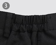 脇ゴム ウエストは脇ゴム仕様です。体にフィットして動きやすくなっています。 |